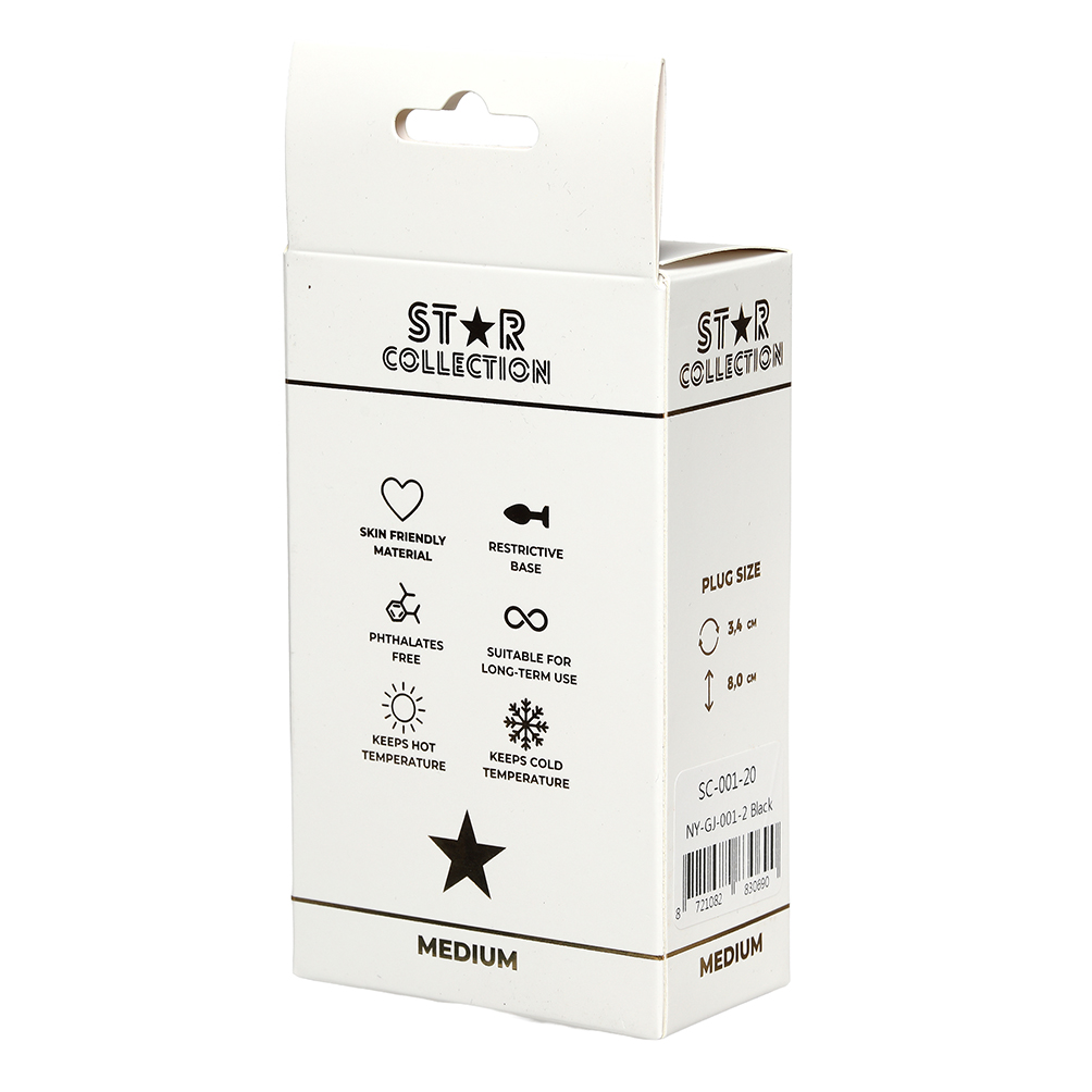 This black silicone anal plug M from the Star Collection is designed for comfort, style, and confident use. Made from high-quality, body-safe silicone, it offers a smooth, flexible feel for a pleasurable experience. The light pink stone at the base adds a soft, elegant contrast to the sleek black silicone.